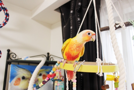 3日目で、少し部屋の環境に慣れてきたかな〜と言うところで、放鳥してみました。