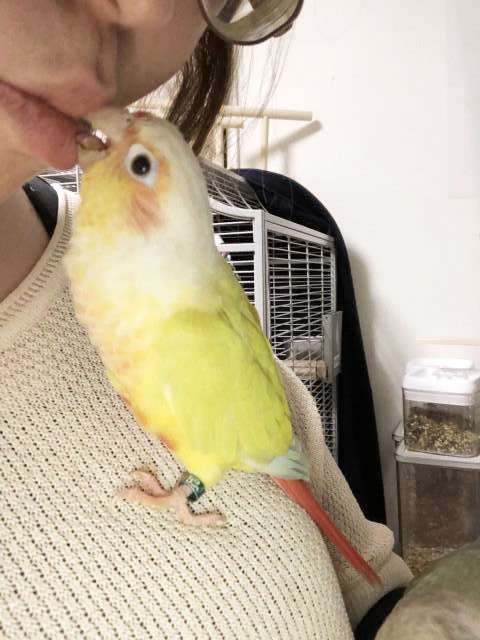 毎日元気に飛び回り、食べまくり、放鳥すればいつも首元にいて体温を感じる位置にいてくれるんですが、キスをしないと放鳥が終わらない。これも、挨拶でチークキスをするラテン文化から来ているのかなぁ?なんて思っちゃうんですが、、(別に南米が原産地で、そこに住んでいたわけじゃないんだけどね)
