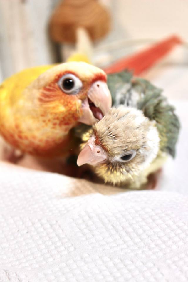 甘えん坊でおてんばな次女マリンちゃんと一緒に遊びつつ、時に空気を読んで制御したり、そしてアフターフォローの「カキカキ」羽繕いタイムで愛情を届けるのも上手です。